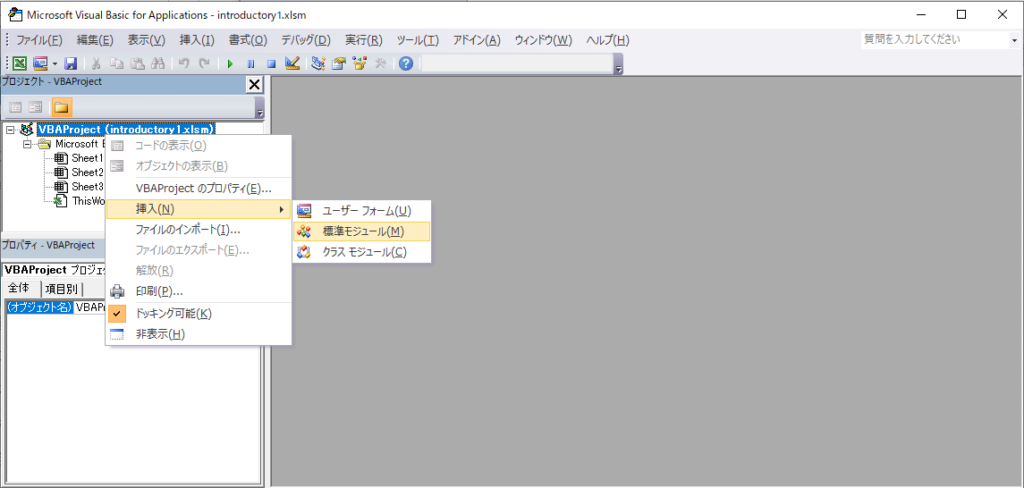 右クリック→挿入(N)→標準モジュールの順に押下し